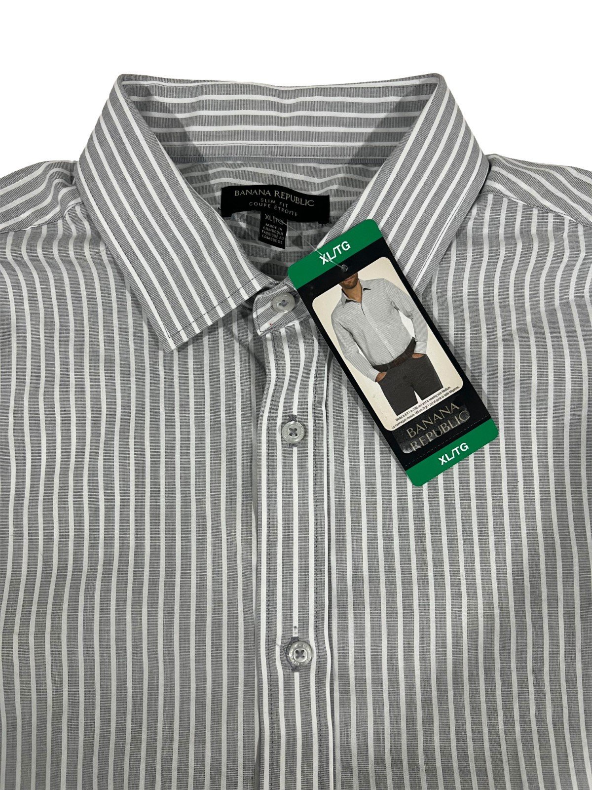 Banana Republic Men’s Grey Shirt Vertical Striped Long Sleeve (017)