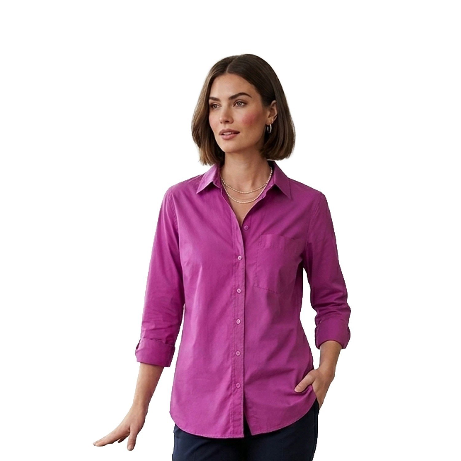 - Button-up Front with Pointed Collar